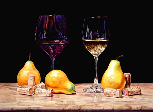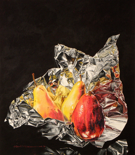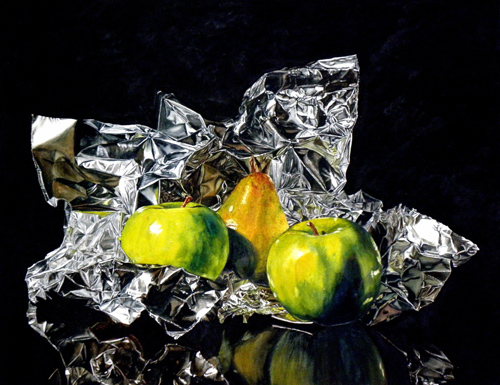 Pear and Apple on Foil - 20x26 - SOLD