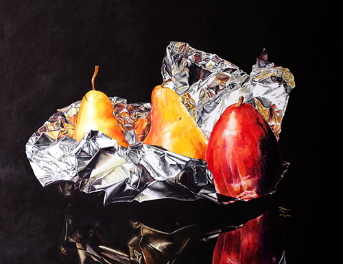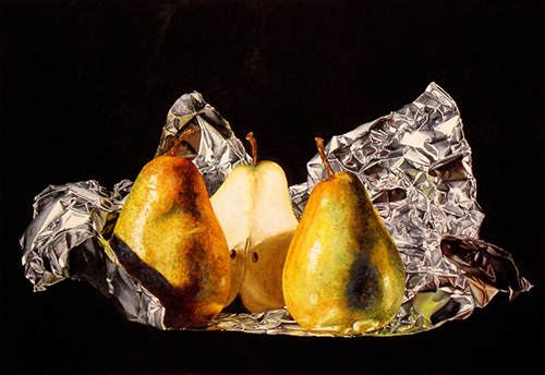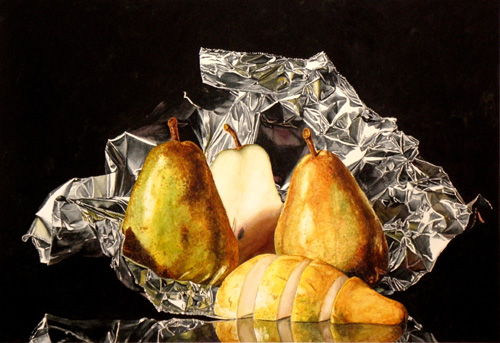 Two & Half Pears on Foil - 18x26 - SOLD