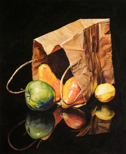 Paper Bag with Fruit - 14x17 - SOLD
