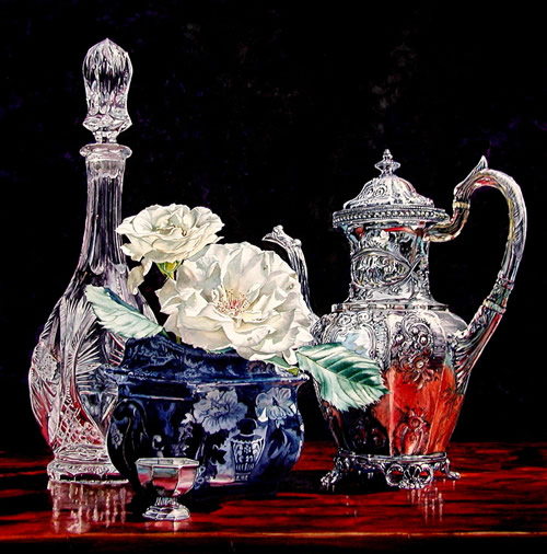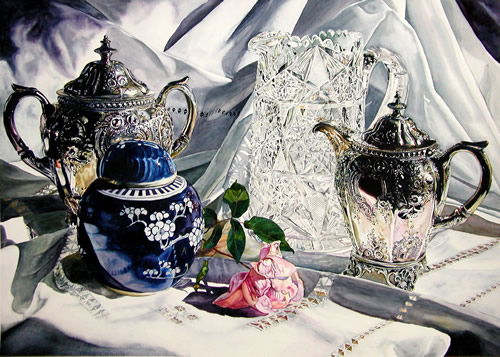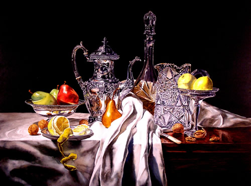 Silver & Crystal with Pears & Lemons - 20x26 - SOLD